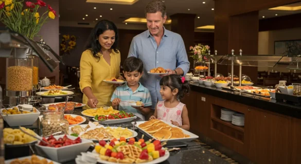 3. Buffet y menús adaptados: Opciones saludables, menús infantiles y flexibilidad en horarios de comida.